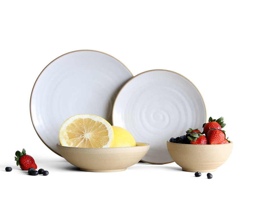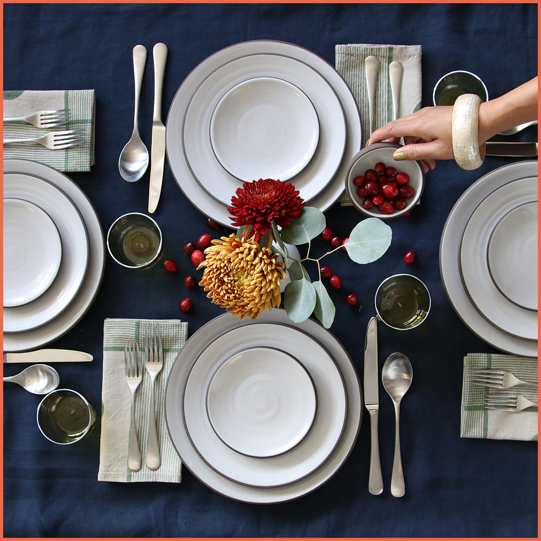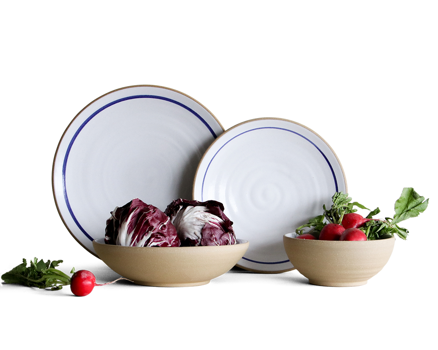 A perfect example of form and function. Not only is Jono Pandolfi dinnerware a beautiful canvas, it performs and endures as well. I never have to worry about stacking them too high or accidentally bumping or chipping them.